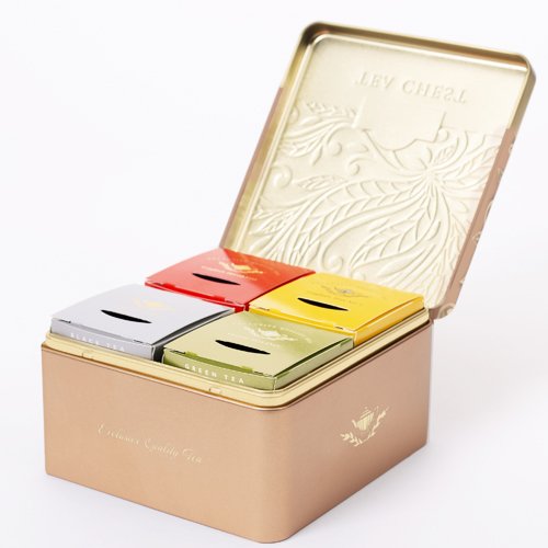 Šioje gražioje rožinio aukso spalvos arbatos skrynioje surinkti keturi brangiausi mūsų mišiniai. Viduje rasite 40 itin geros arbatos puodelių.